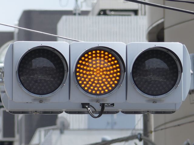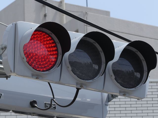 道路拡幅により一部の灯器がLED式灯器に交換されましたが、変則配列灯器で引き継がれています。