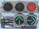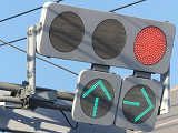 元々矢印灯器がなく、3色灯器を制限高さぎりぎりに設置していたようですが、矢印灯器を追加することになり、本灯器を持ち上げる形で設置しています。