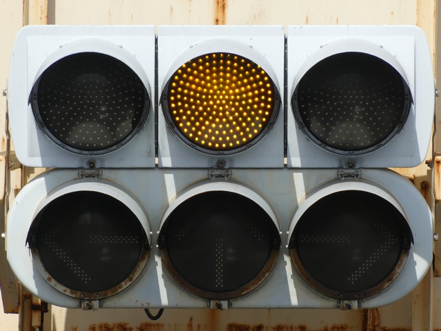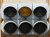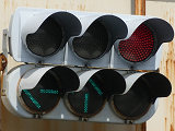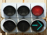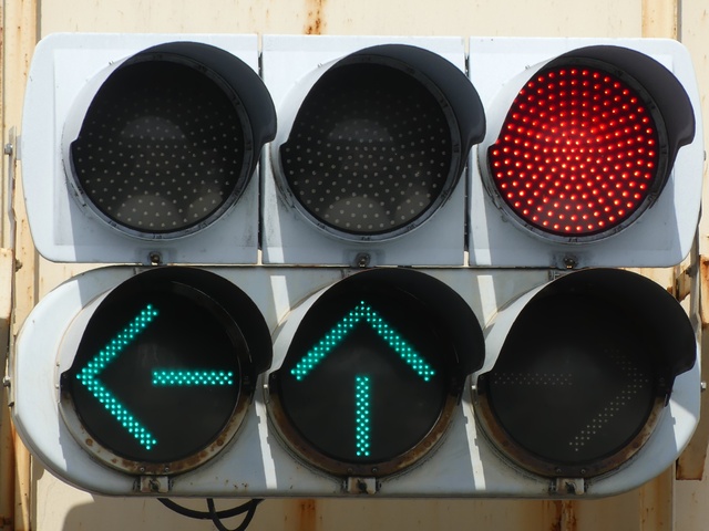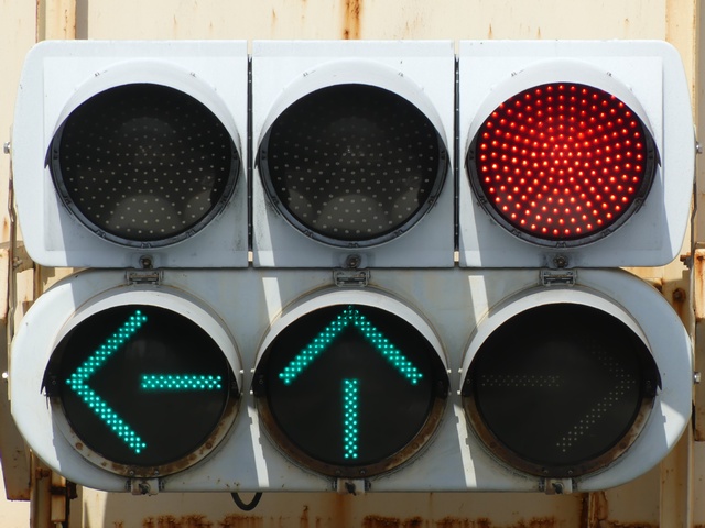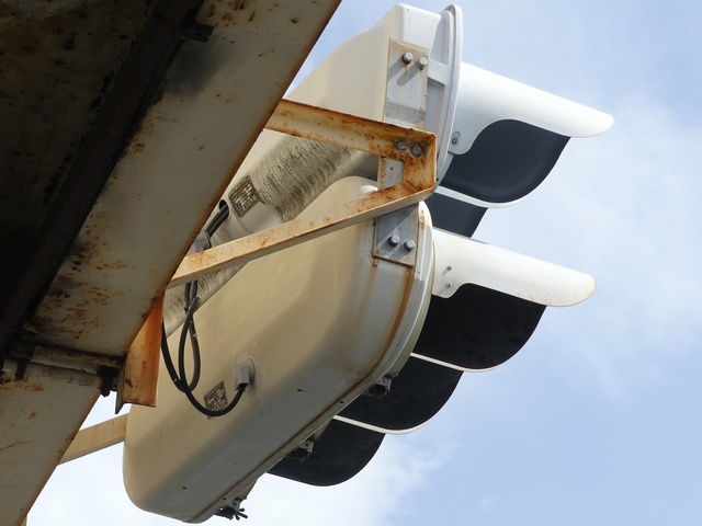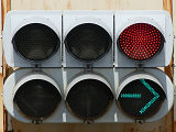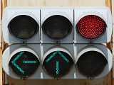 金属製3位式丸型灯器のLED式矢印灯器です。この交差点に6台設置されています。