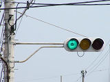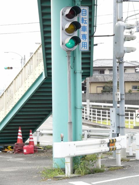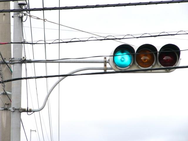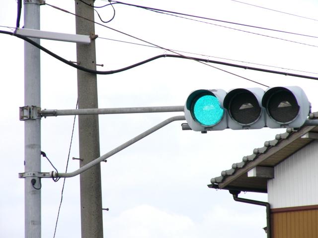 これは古い小糸工業タイプで、円弧アームが信号柱の付近で屈曲しています。