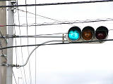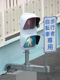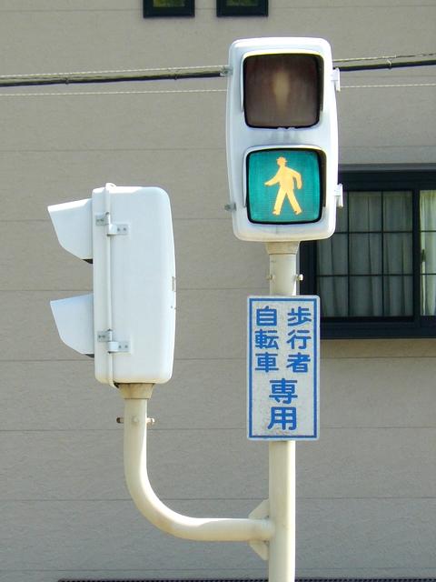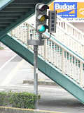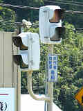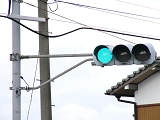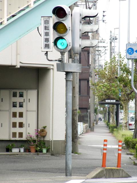 自立型信号柱の途中から枝分かれさせています。灯器の高さがアンバランスです。