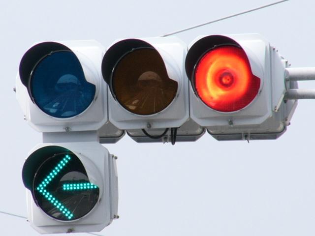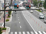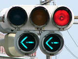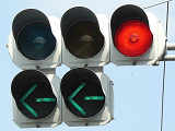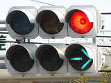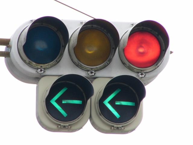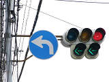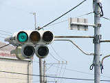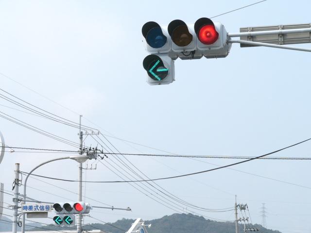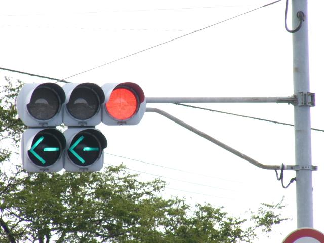 T形交差点に右から進入する道路で使用されています。赤信号の後に矢印が点灯するためだと思われます。補助灯器は矢印が1つです。