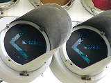 Y形交差点に右上から進入する道路で使用されています。主灯器、補助灯器とも矢印が2つです。