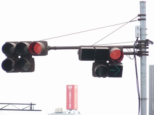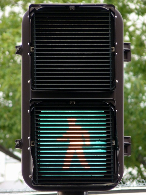 | 長いフードの歩行者用灯器 |