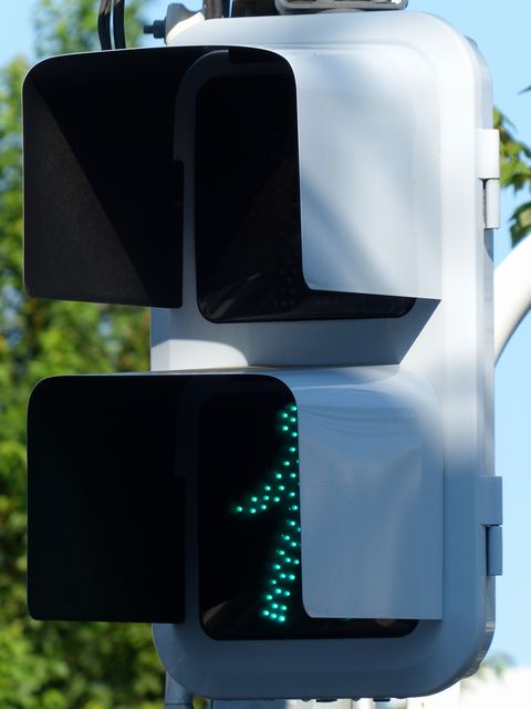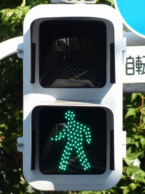 | 青のみ制限フードの歩行者用灯器 |