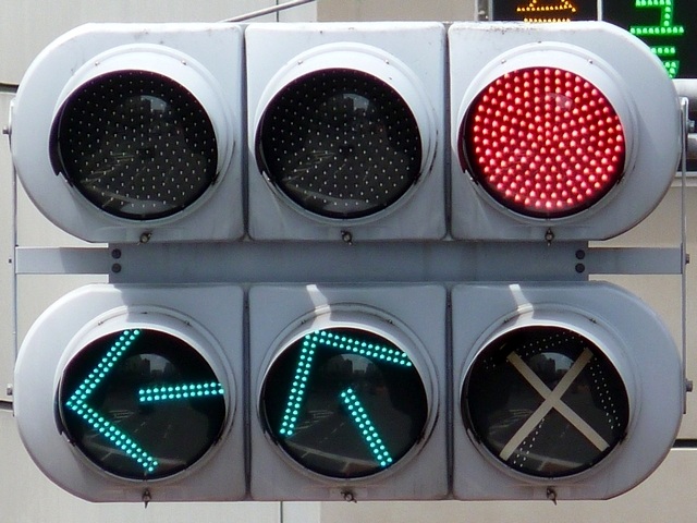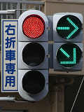 なお、平成24年4月1日の改正法令施行により矢印信号に関する規定の整備が行われ、真右を差す矢印が右折(転回を含む。)を表す矢印と定められたため、2種類の右折矢印を使用する必要はありません。 |