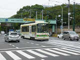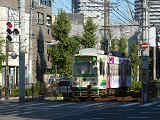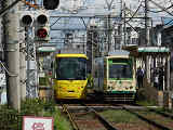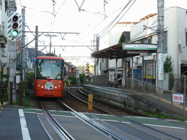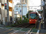 町屋駅前停留場〜梶原停留場あたりでは、道路に挟まれた部分を軌道が通っていますが、道路とは分離されているため、大きな道路とは信号交差点で、狭い道路とは踏切で交差しています。信号交差点では、並走する車両と同じ信号に従う箇所と、別の信号に従う箇所があります。
