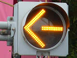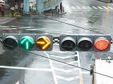 歩車分離のため、青信号にならず矢印信号で交通を制御するので、黄矢印も点灯します。