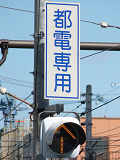 こちらでは、道路の構造上、並走する車両と交差点内でクロスするため、「都電専用」の黄矢印灯器が設置されています。
