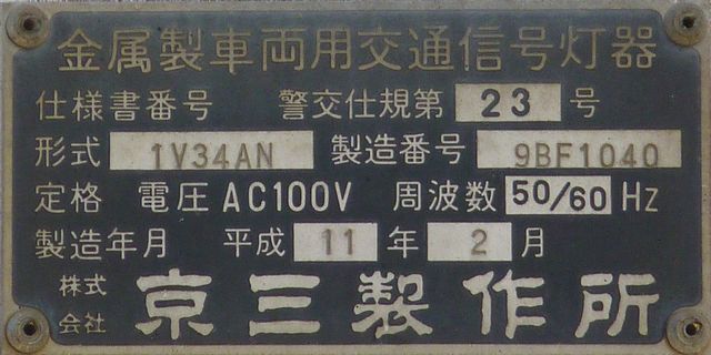 荒川車庫内に設置された灯器です。