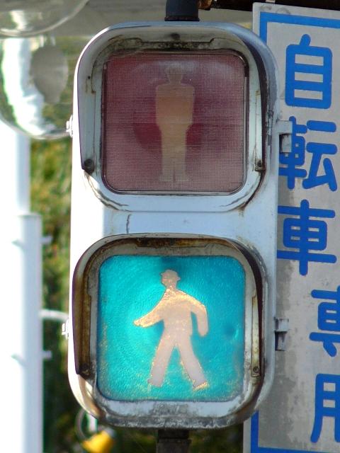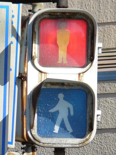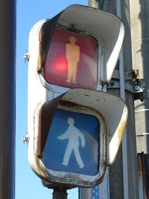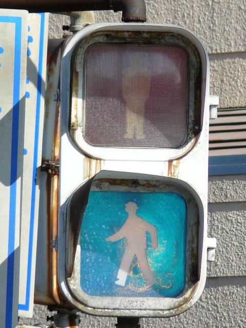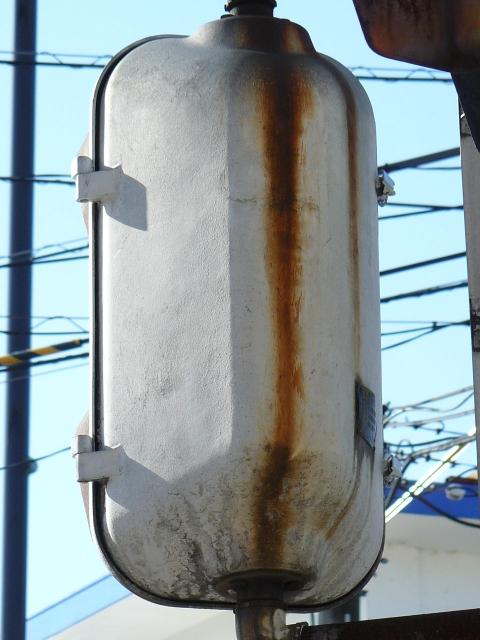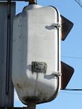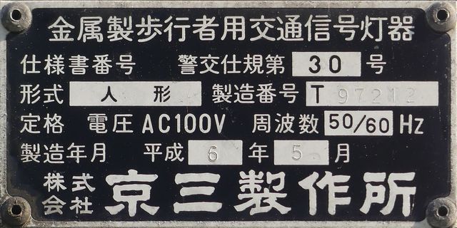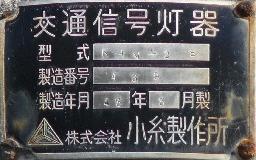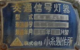 レンズ焼けで見えにくくなってしまったためか、赤のみレンズが交換されています。銘板記載の製造会社が「小糸製作所」となっている古い灯器です。(この灯器が製造されたころに信号機関連の事業が小糸工業に譲渡された。)