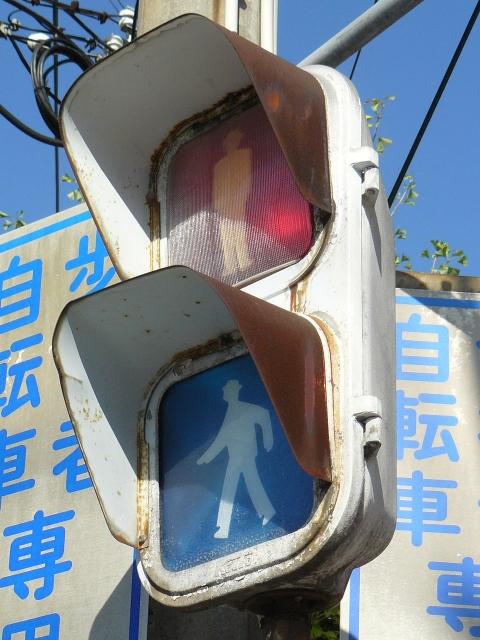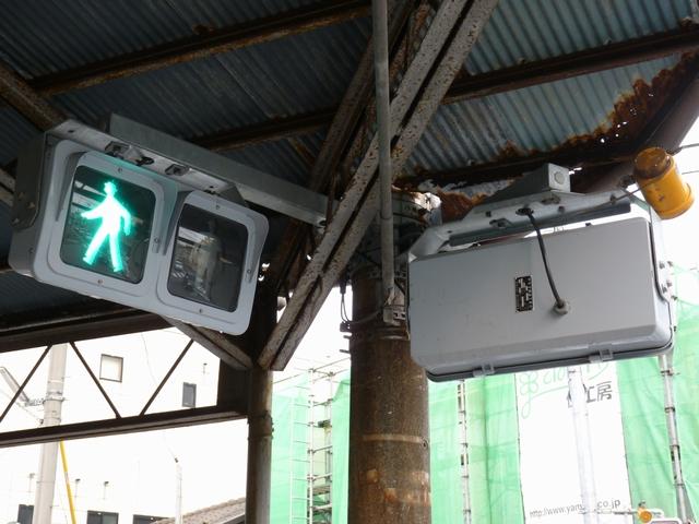 元々電球式灯器であったものにLED式のユニットを組み込んだものの、青灯に不具合が発生したため、再度青灯のみに電球式のユニットを組み込んだようです。