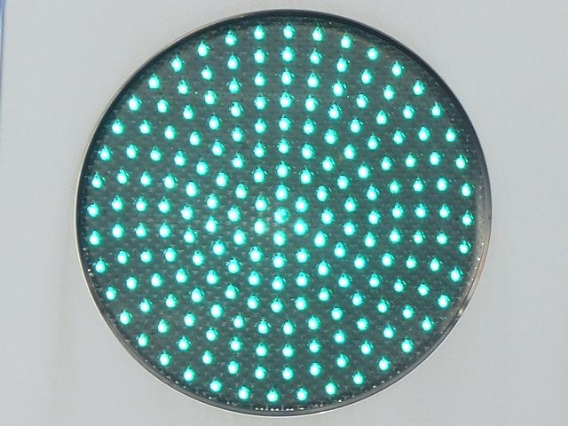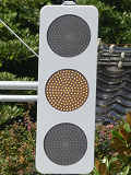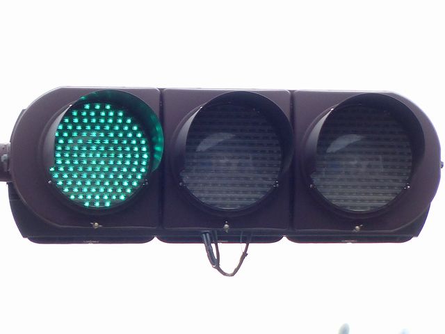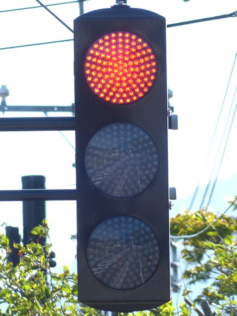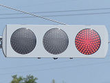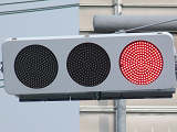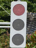 各社のLED式灯器が量産されだしたころに、一部の県で試験設置され、奈良県で多く設置されたLED素子が横並びの信号電材製LED式灯器です。