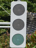 平成25年度の新設工事で使用されている量産型と思われるフードレス灯器です。いわゆる耳の部分や背面など、従来の電材製薄型灯器と共通したデザインとなっています。