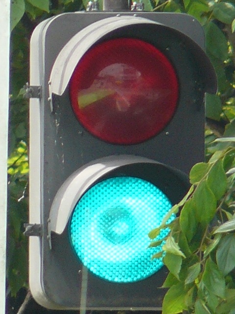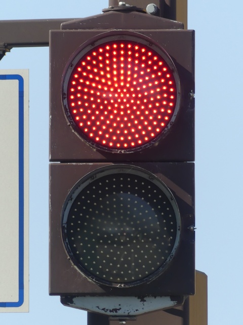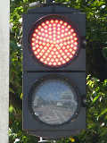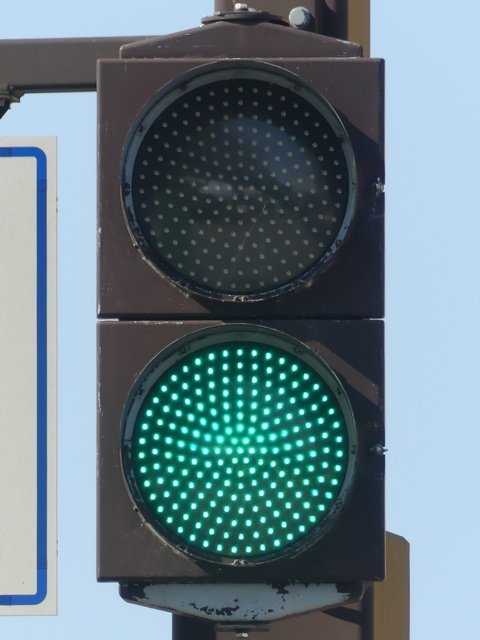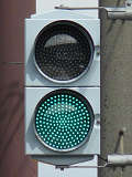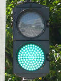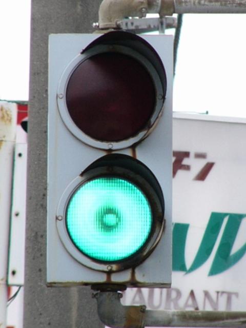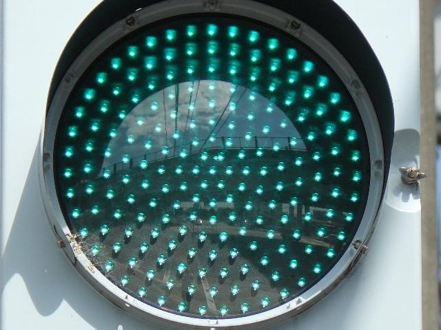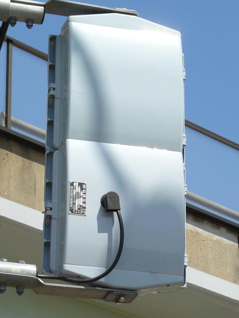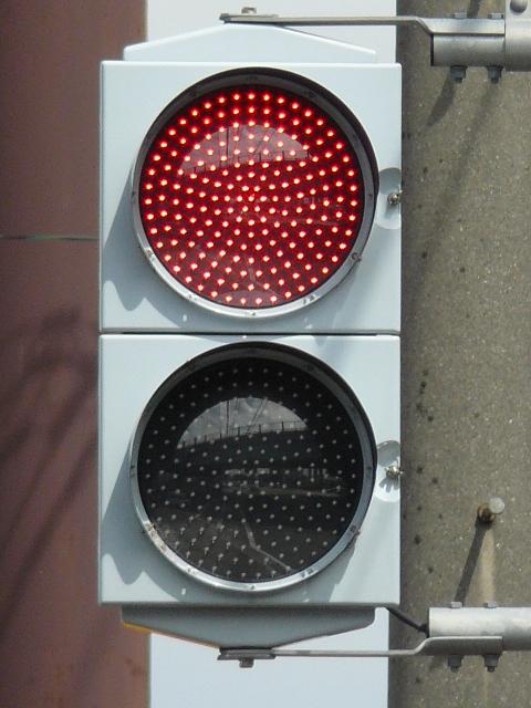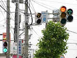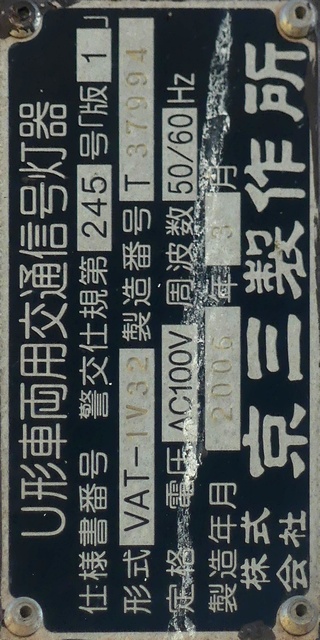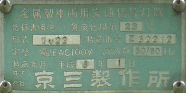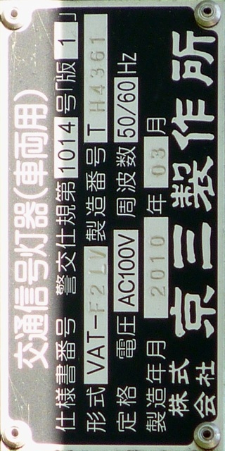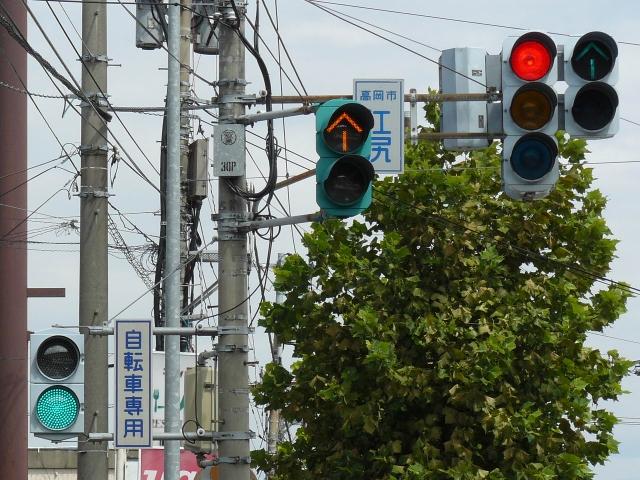 信号は青、青点滅、赤の順に変わります。しかし車両用信号(人形の無い信号)の青点滅信号(青色の灯火の点滅)の意味は道路交通法施行令では規定されていません。 動画はできるだけ大きく映すため横向きになっています、ご了承ください。 以前は角型灯器が使用されていましたが、現在は薄型灯器に交換されています。県内何箇所かにこの角型灯器が設置されていましたが、すべて同時期に薄型灯器に交換されたようで、薄型灯器の製造番号がほぼ連番になっています。(ちなみに富山ライトレール用の灯器(薄型灯器を含む)もほぼ連番です。)