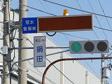 交差点の灯器にはガード下の冠水情報を伝えると思われる電光標示板が併設されています。