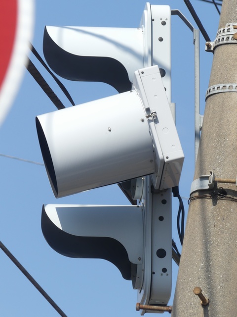 なお、矢印灯器は距離制限フードを装着したうえで、うつむき設置としており、踏切の直前まで来ないと矢印信号は見えません。