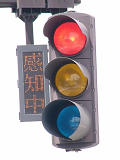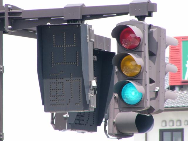 車両を感知するか、歩行者が押ボタンを押すと「感知中」の表示が点灯します。