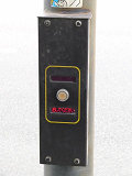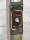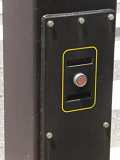 デザイン柱埋設の押ボタン箱です。保護色で押ボタン箱が埋め込まれている上に、標示板が全く設置されていないため、押ボタン箱があることが非常に分かりにくく問題があります。実は私もここを横断する時、押ボタン式信号機であることに気付かず、ずっと待ってしまいました。