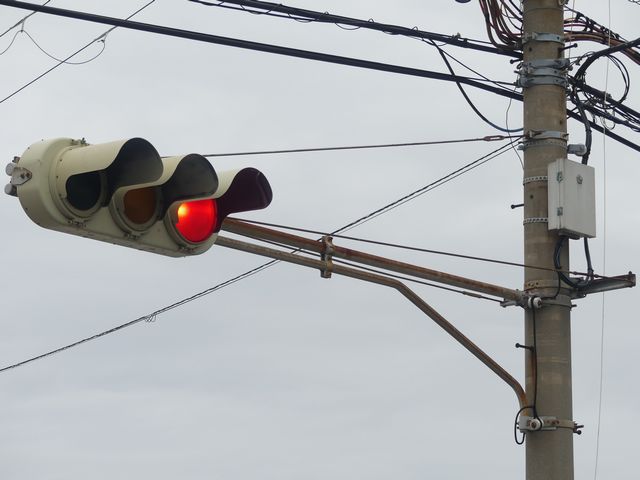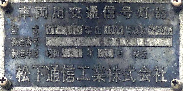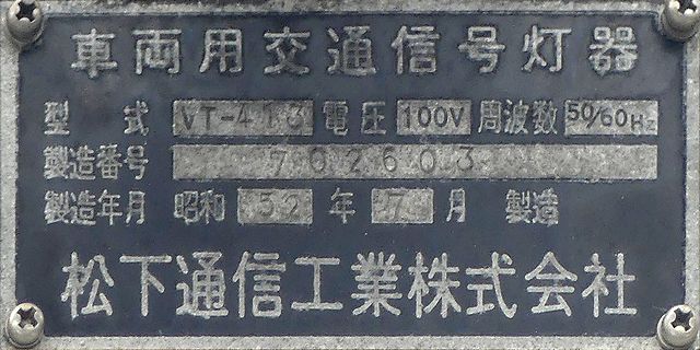 赤のみ直径300mmレンズで、その他は直径250mmレンズです。後から蓋ごと交換されたものだと思われます。S55.1製。