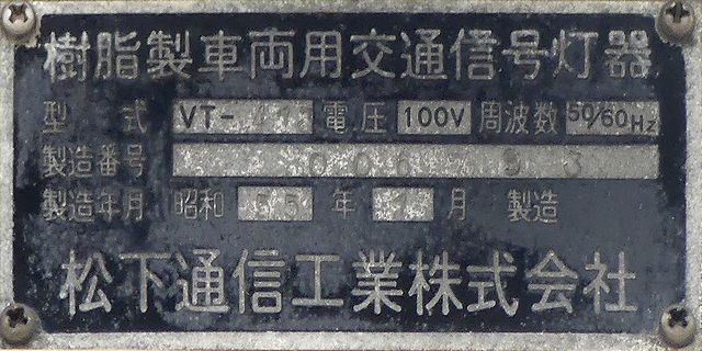 赤のみ直径300mmレンズで、その他は直径250mmレンズです。赤のみ蓋の開閉が上下逆になっています。後から蓋ごと交換されたものだと思われます。S53.4製。
