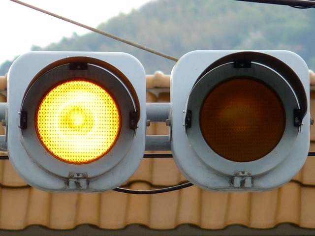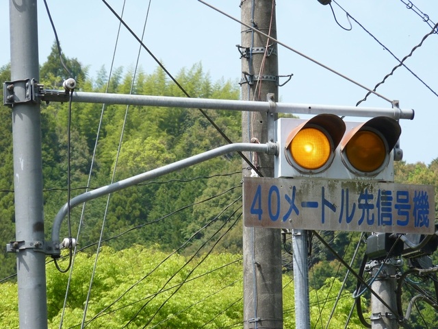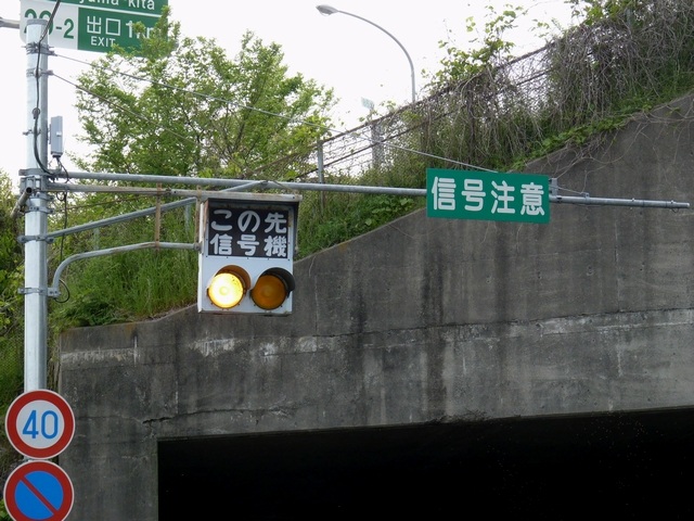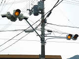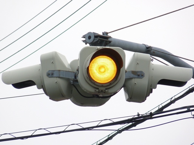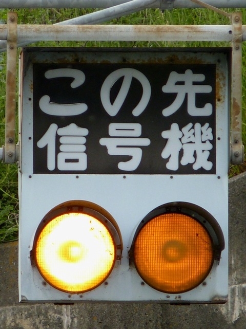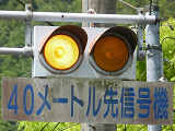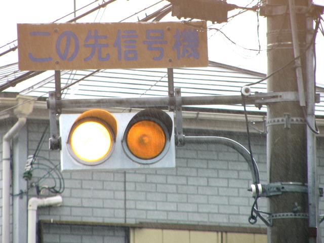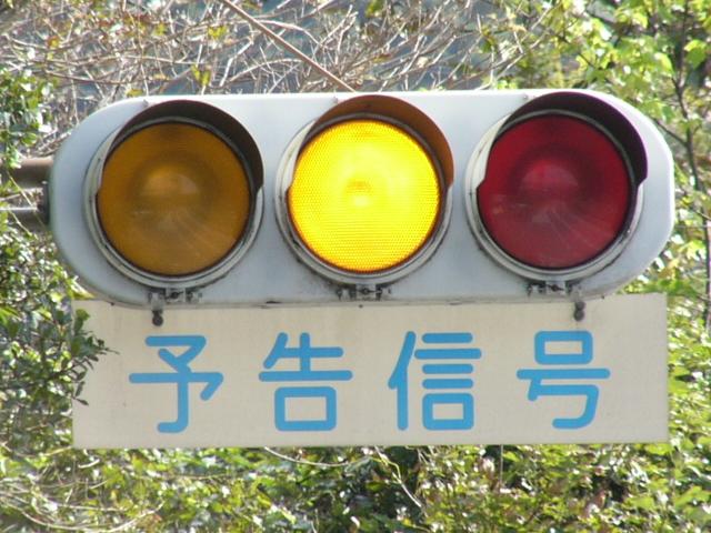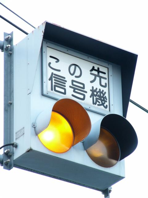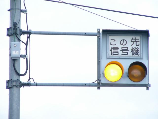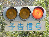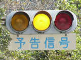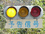 前方の信号交差点の信号が青の時にこの「予告信号」が左黄点滅し、黄、赤の時は「予告信号」の中黄、赤がそれぞれ点灯します。