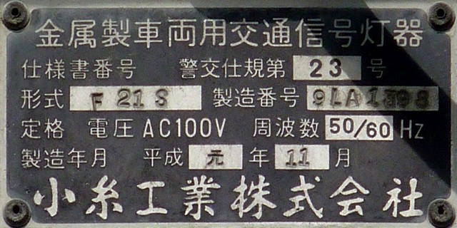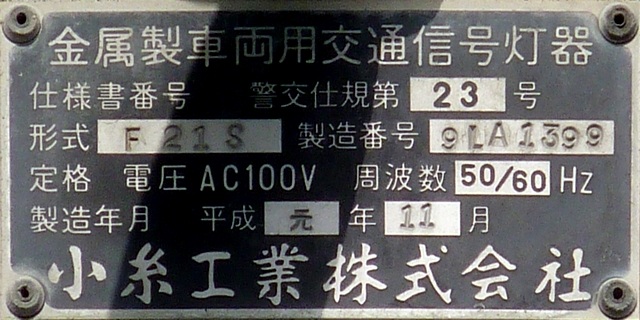 大阪府などのタイプに似ていますが、点滅の仕方が変わっており、交互点滅の間に消灯する瞬間があります。また、フードが短く、背面の扉に取っ手が付いています。