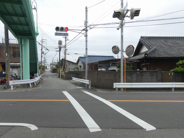 押ボタンを押下していないときは、主道路の車両用灯器が黄点滅、従道路の車両用灯器が赤点滅となっています。従道路の自転車は赤点滅信号に従って一時停止さえすれば、自転車横断帯による横断のため、法令上は最優先で横断することができます。