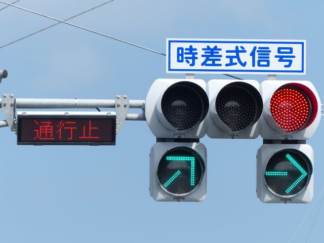 しかし、実際には軽車両や二輪(降りて歩行者用通路を通行可)の往来があるのに、それをまったく考慮していない信号サイクルです。なお、見ていると地元の二輪の人は、信号無視にならないようにこの交差点を通過するときだけ二輪を降りて通行していました。