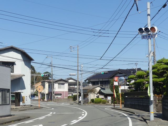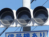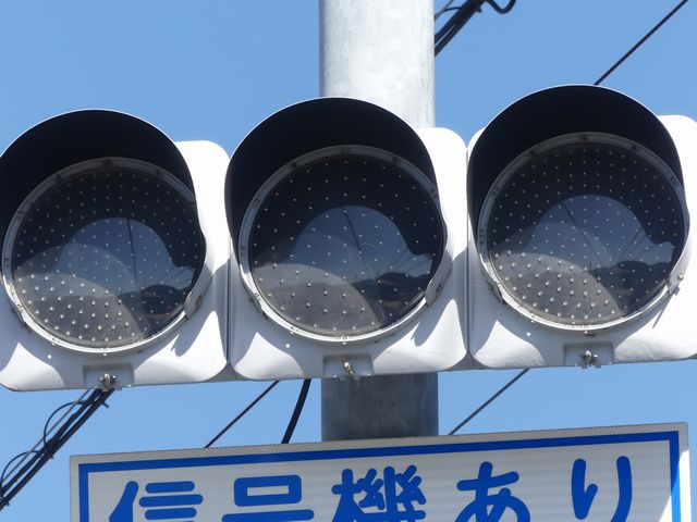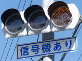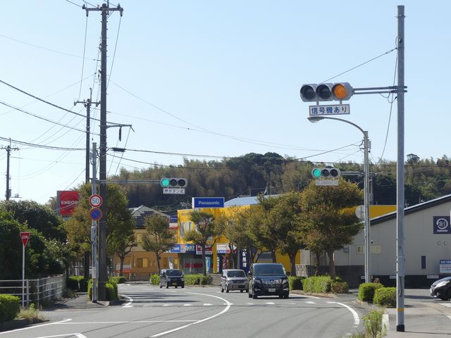 黄・青・黄配列、「予告信号」標示板のもので、前方信号に連動しないのは県内でここだけでしょうか。