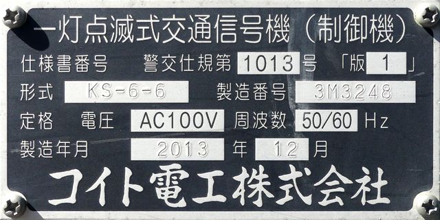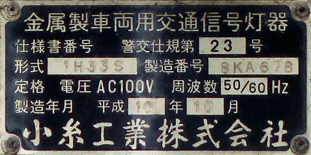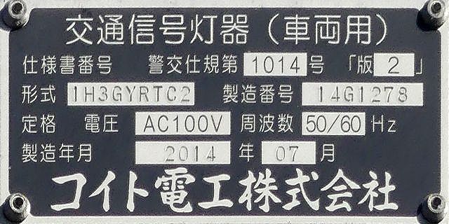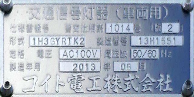 真ん中は点灯しませんが、LED配列から青灯と思われます。なお、銘板の形式の「GYR」の部分は、配列が青・黄・赤であることを表しています。