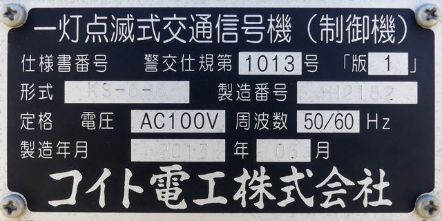 前方信号と連動しないため、交差点用信号機とは別に、1灯点滅用の制御機を使用しています。