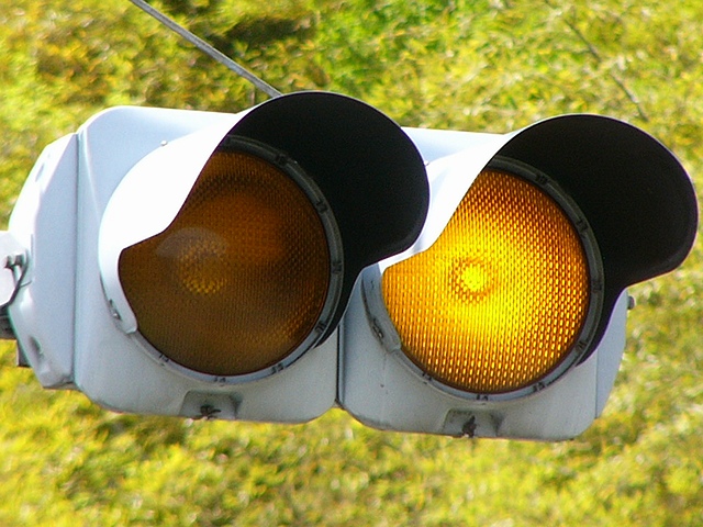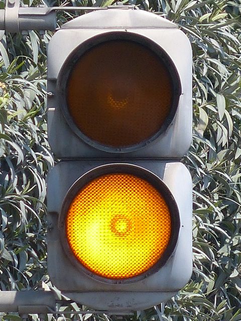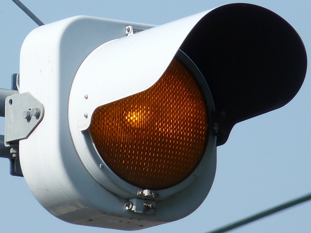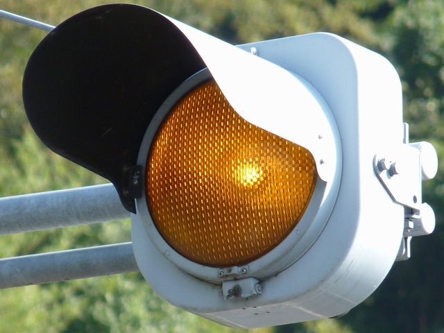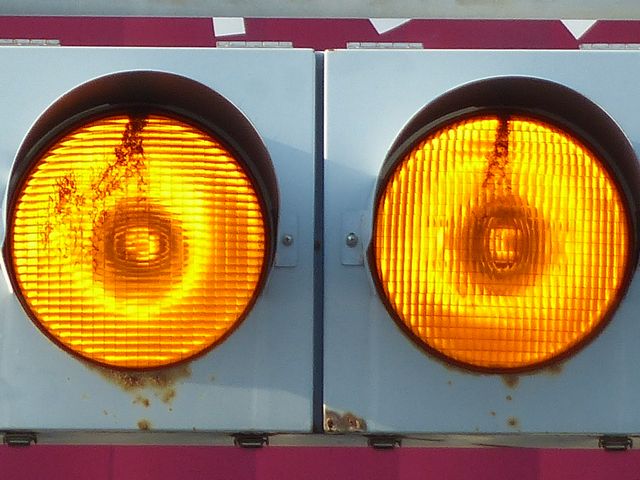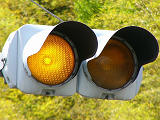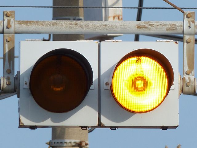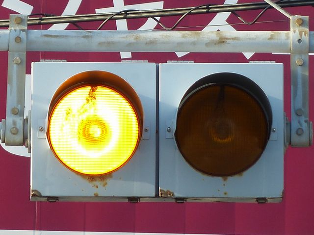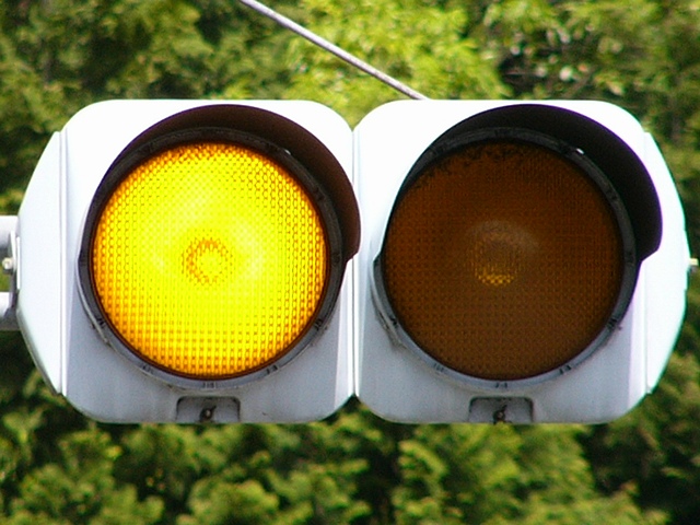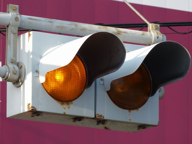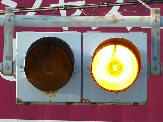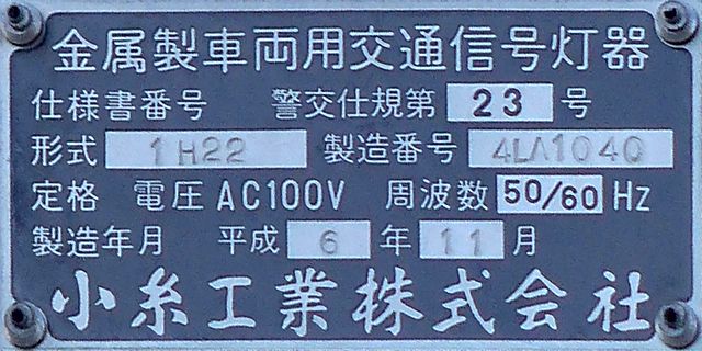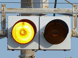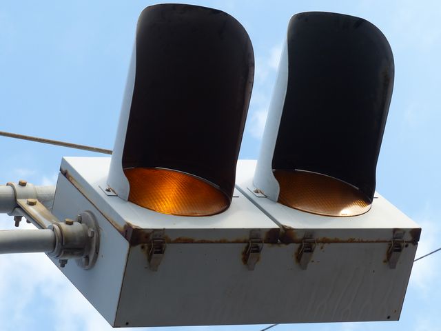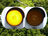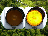 制御機の都合か、左右の黄の点灯時間が異なり、左:右=4:5ほどの点灯時間の割合でゆっくり点滅します。