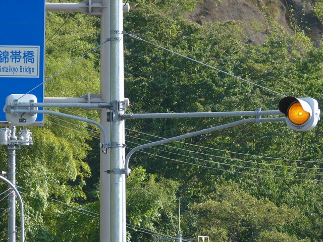 平野部にある交通量の多い道路の急カーブの中程に両方向に対して設置されています。左右の黄が交互点滅し、急カーブの注意喚起をしています。両方向とも100mほど先に信号交差点がありますが、このカーブを曲がり終えれば直線で見通しがきくため予告信号ではないようです。