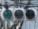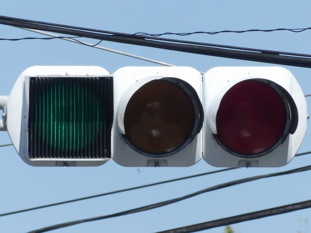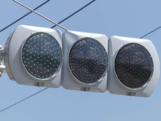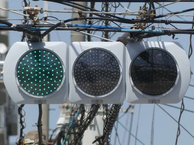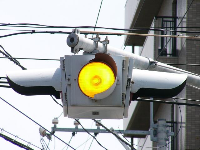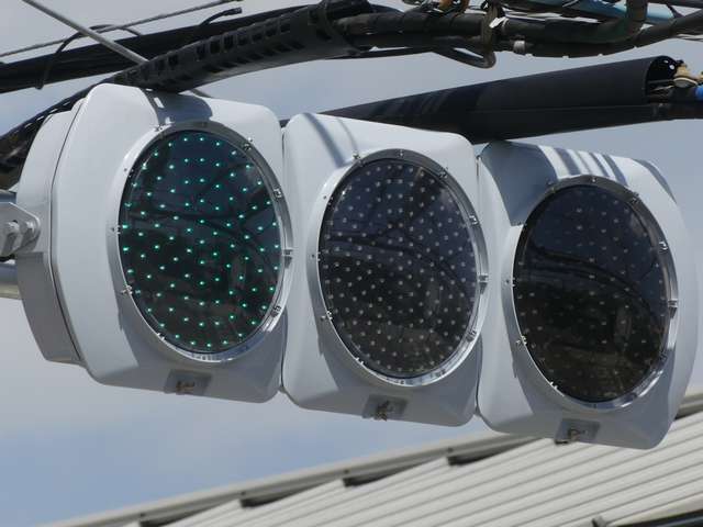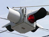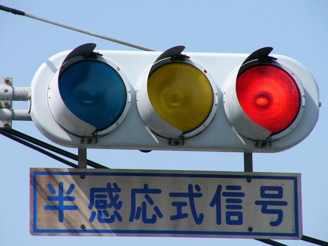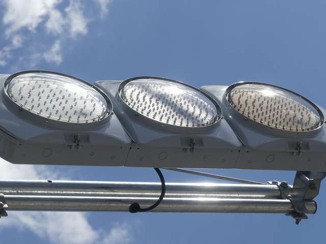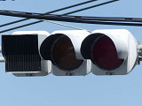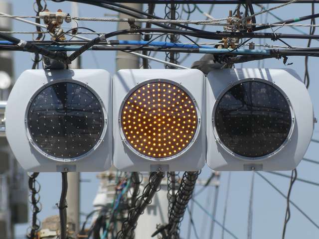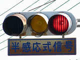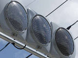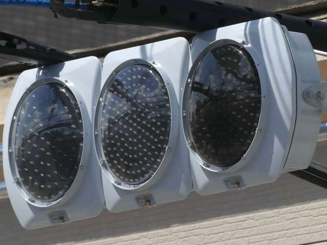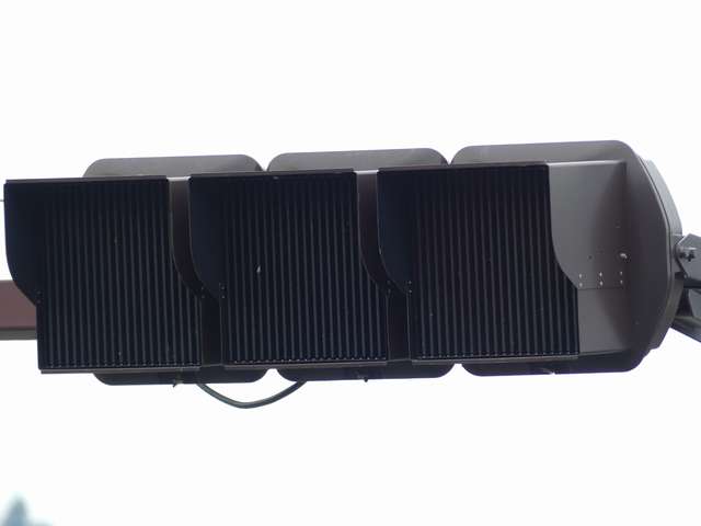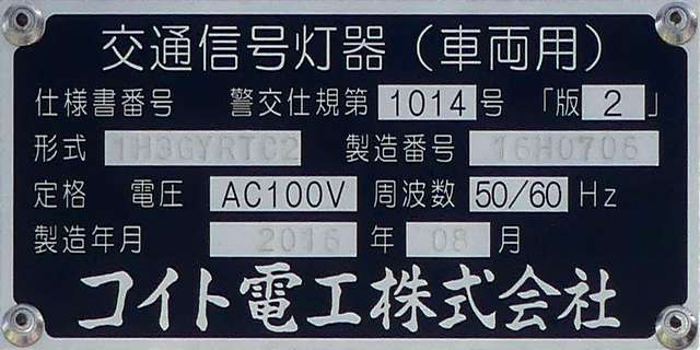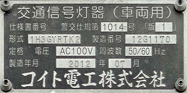 何かの試験のようですが、フードが取り付けられていない理由は分かりません。視認性には問題ないようです。 赤灯のレンズがほかの灯火のレンズより暗いのがわかります。 |