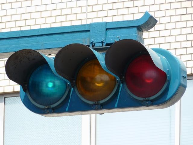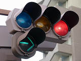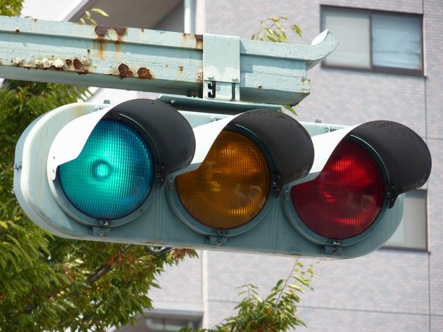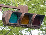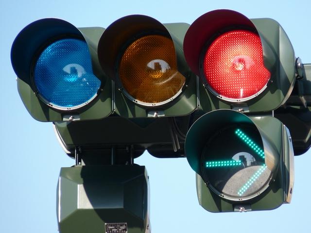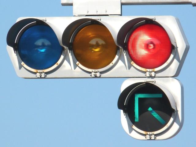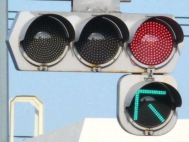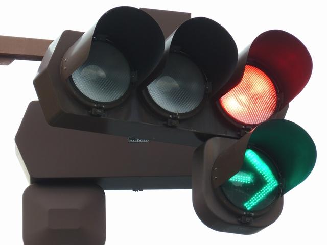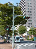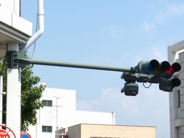 防府市街に設置されている6角形車両用灯器です。LED式の車両用灯器は、当初からLED式のものと、電球式灯器にLEDユニットを組み込んだものがあります。