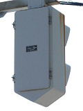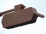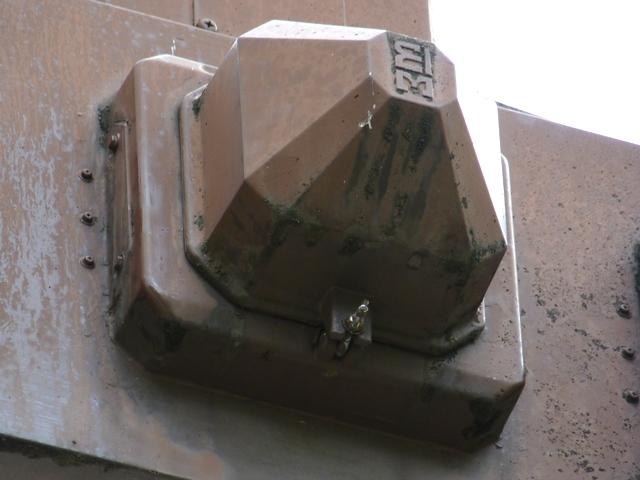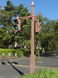 鋭角交差点では偏光レンズ灯器を組み込んだものもありました。偏光レンズ灯器は奥行きがあるため、デザイン灯器の背面を貫通させていました。銘板はありませんでした。