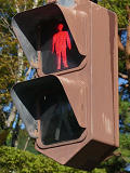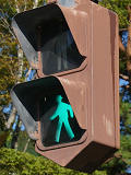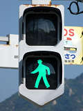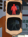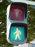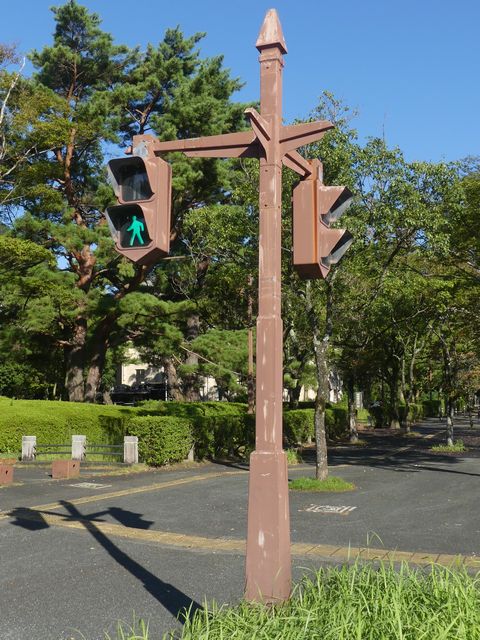 山口駅〜県庁付近(2010/9現在、3交差点)に設置されている5角形歩行者用灯器です。当初電球式だったものにLEDユニットを組み込んだものです。設置時期により2タイプの灯箱があります。