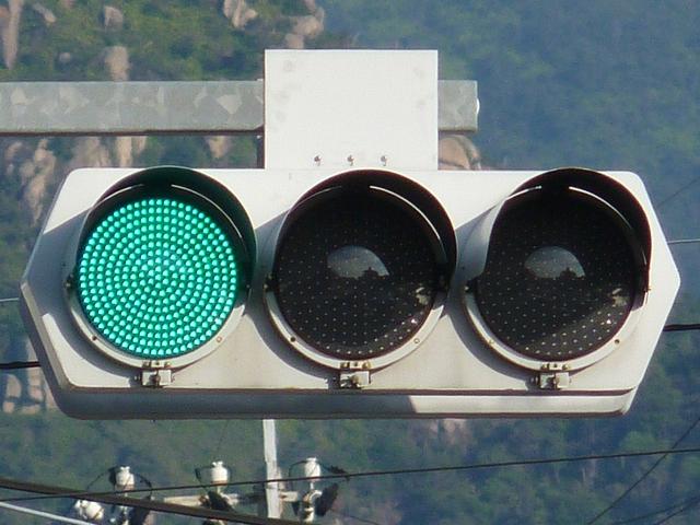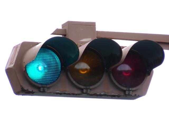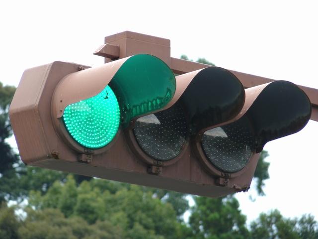 「防府駅てんじんぐち」交差点の緑塗装灯器です。