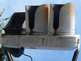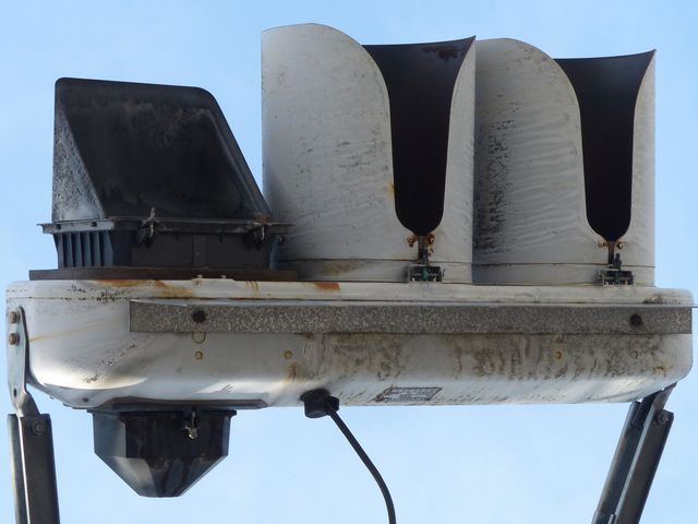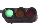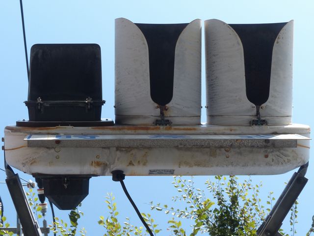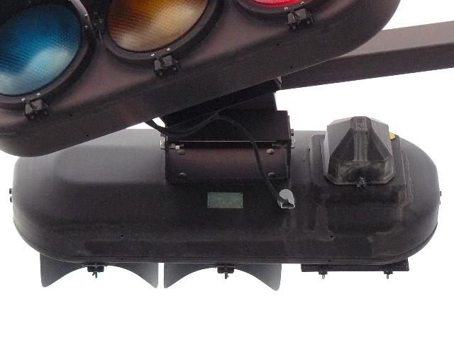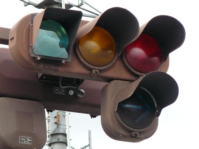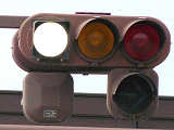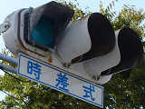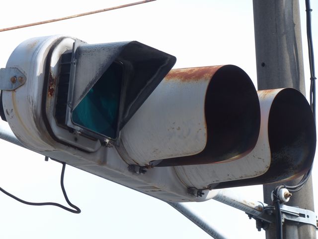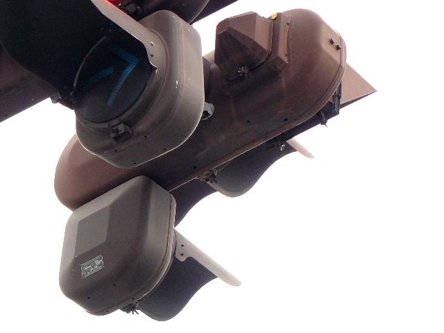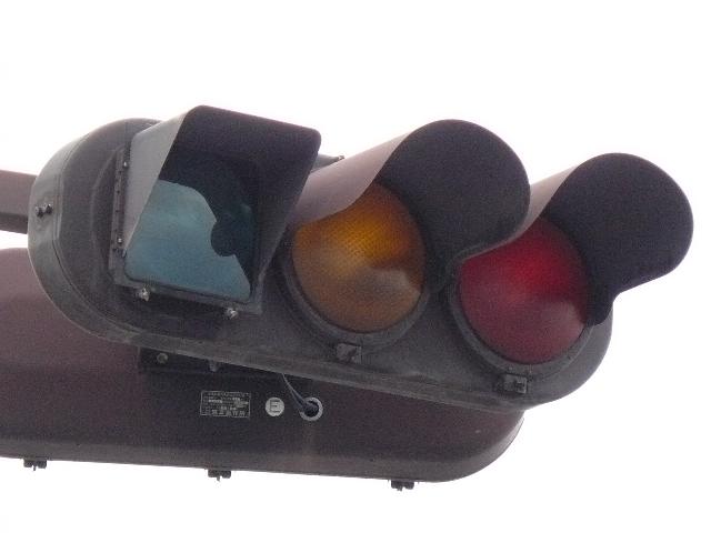 鋭角交差点での誤認防止のため、左右制限のために青灯のみ偏光灯器を組み込んだ灯器を使用しています。