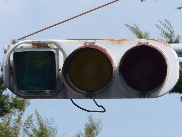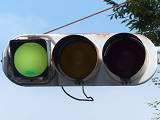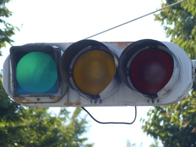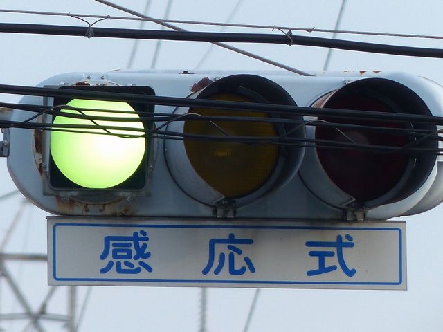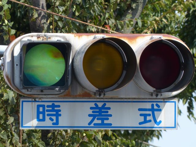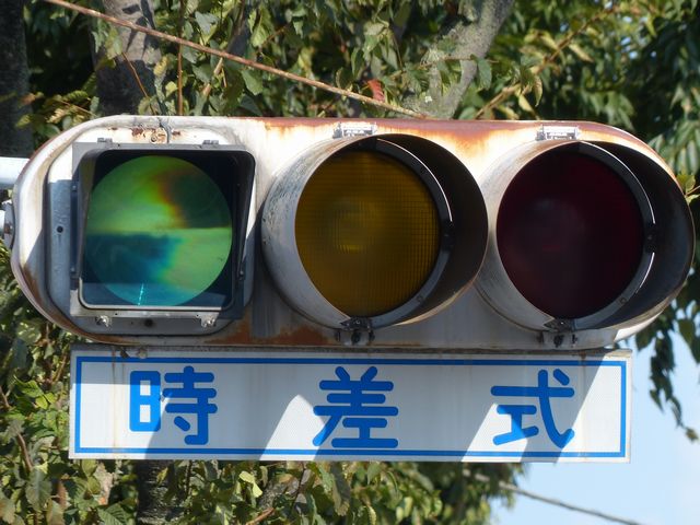 連続交差点で手前交差点に進入する車両のドライバーが奥交差点の信号を誤認するのを防ぐため、距離制限のために青灯のみ偏光灯器を組み込んだ灯器を使用しています。