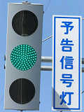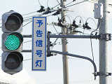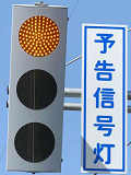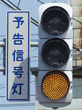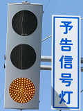 信号交差点の手前の道路に起伏があるため、「予告信号灯」が設置されています。前方の信号が黄信号になるのと同時に点滅を開始します。