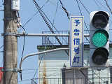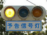 信号交差点の手前の道路がカーブしているため、「予告信号灯」が設置されています。現在は交換されています。