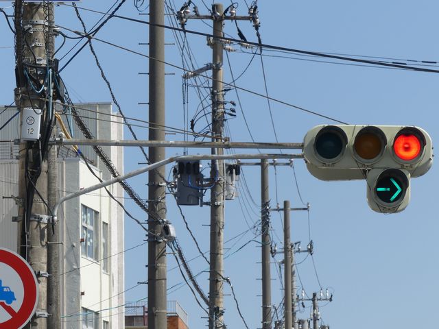 直径250mmレンズの矢印灯器です。この交差点に2台あります。